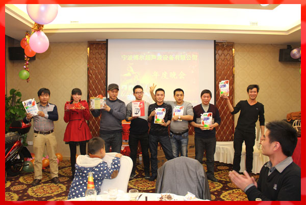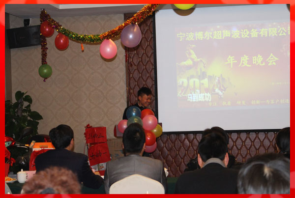 此次年會由公司行政部門精心策劃,聘請了專業(yè)的主持和音控團(tuán)隊(duì)。公司員工精心布置了會場、安排各游戲互動環(huán)節(jié),財(cái)務(wù)部購置了豐盛的獎(jiǎng)品;使得寧波博爾超聲波設(shè)備有限公司2013年年度晚會舉辦的成功、歡樂、祥和、圓滿!